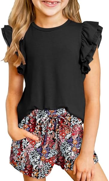 - The Kid Toddler Girl Summer Ruffle Sleeve Graphic Tee Shirt features cute designs and comfortable fit.