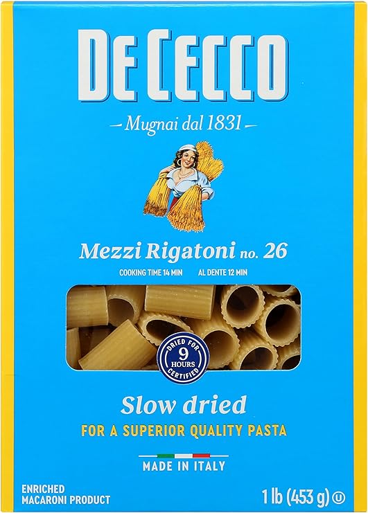 • De Cecco Mezzi Rigatoni, 16 oz, offers ridged, hearty pasta ideal for chunky sauces, delivering authentic Italian flavor and texture.