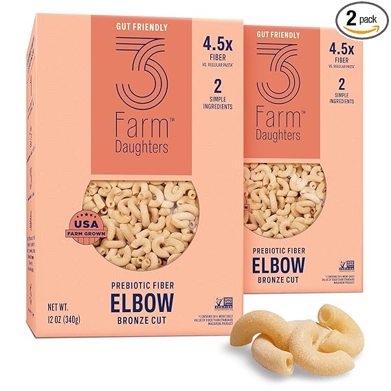 • Three Farm Daughters High Fiber Elbow Macaroni Pasta offers a nutritious, delicious, and fiber-packed pasta option.