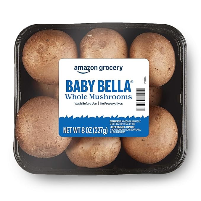 - Fresh whole baby bella mushrooms from Amazon Grocery, perfect for cooking, salads, and healthy meals.