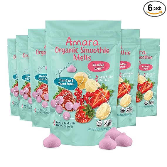 - Amara Smoothie Melts Mixed Red Berries are organic, melt-in-mouth baby snacks made with real fruit.